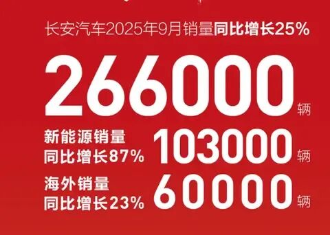Changan Automobile also achieved September sales of 266,000 units, marking a 25% year-on-year increase, with new energy vehicles accounting for 103,000 units, marking an 87% year-on-year increase.