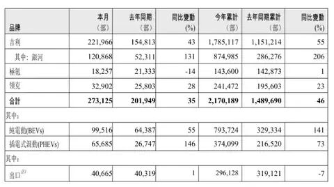 Geely Automobile impressed with September sales reaching 273,125 units, marking a 35% year-on-year increase. Among them, the Geely Galaxy brand performed exceptionally well, with September sales reaching 120,868 units, marking a staggering 131% year-on-year increase.