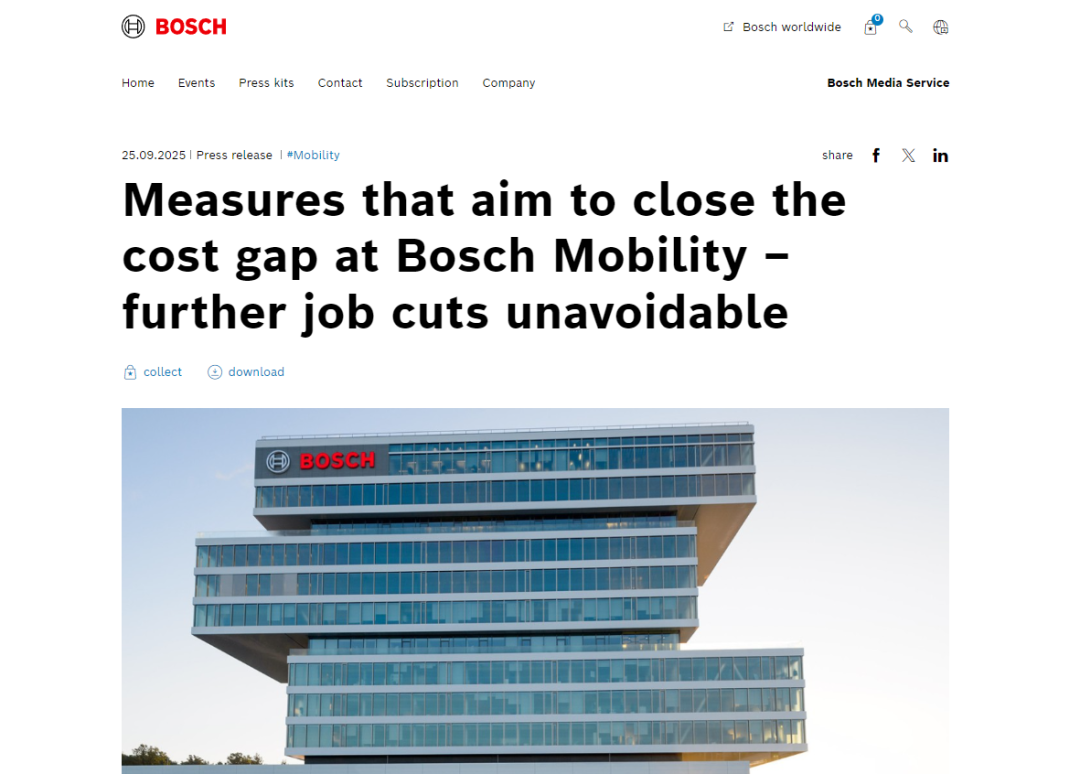 Markus Heyn, a Bosch board member and head of the Intelligent Mobility sector, stated that Bosch plans to cut billions of euros in costs by 2030. At the time, speculation arose that Bosch would conduct large-scale layoffs.
