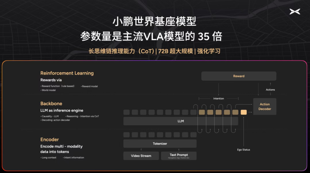 At that time, the G7 had just been released, and He Xiaopeng had also stated, "Large computing power + physical world large model + big data" will jointly define the upper limits of future AI automotive capabilities. The physical world large model is precisely the autonomous driving foundation model developed by Liu Xianming's team.