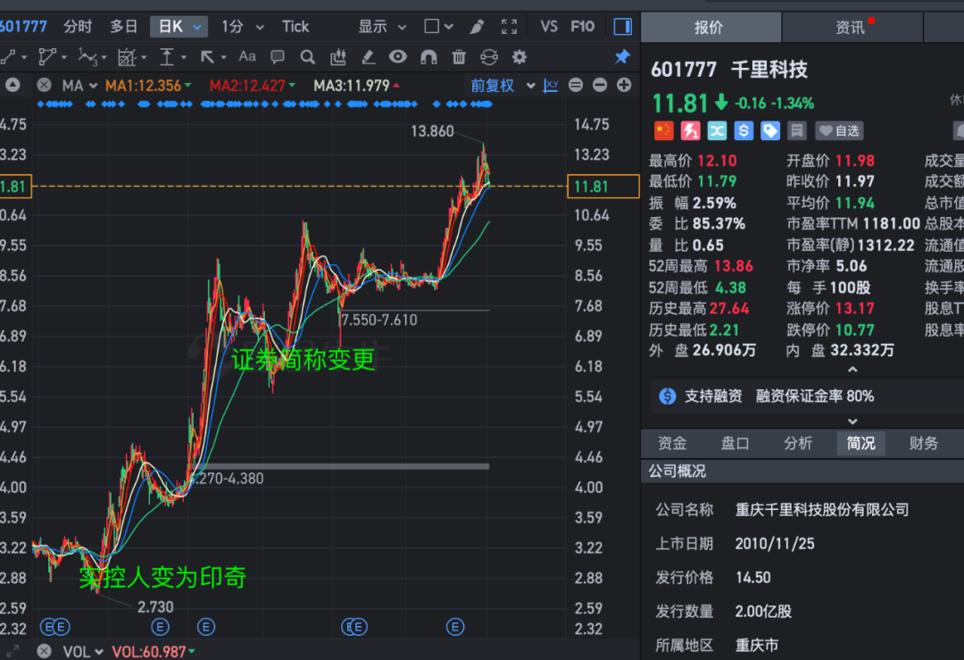 Judging by these key milestones, Qianli Technology's stock has been on a consistent upward trajectory. In June 2024, Qianli Technology's stock price hit a phased low of 2.73 yuan per share. Currently, it has risen to 11.81 yuan per share, with a peak of 13.86 yuan per share during the period, representing a maximum increase of 407%.