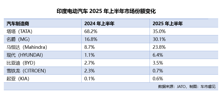 The growth dividends of India's EV market have not been evenly distributed. While Tata Motors remains the leader with a 35% share, its dominance has significantly declined compared to the previous year. This is not solely due to Tata's sales decline but also a result of intensified market competition.