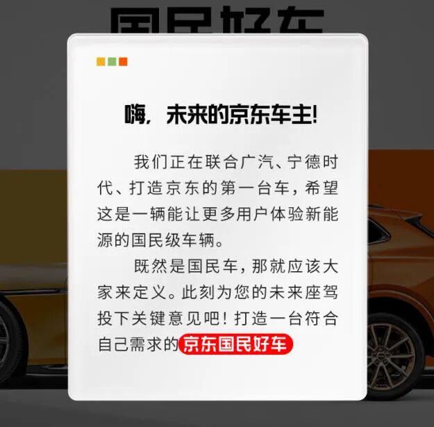During the sales phase, the JD App serves as the exclusive pre-sale platform for this new car. Users can participate in surveys to express their preferences regarding car design, pricing, features, and more, fostering a sense of involvement in 'building JD's inaugural car'.