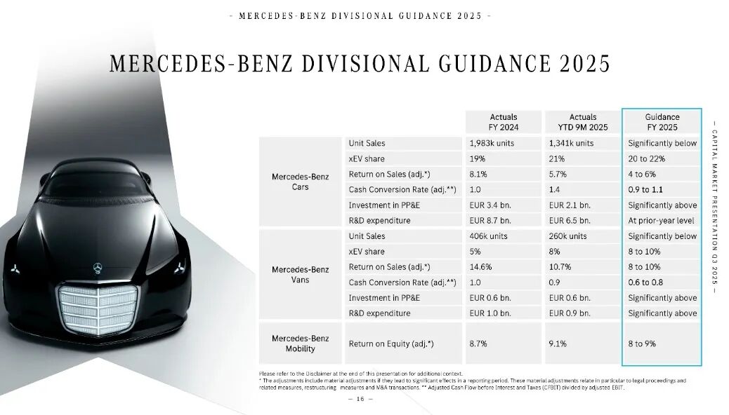 Concurrently, Mercedes-Benz's Q3 restructuring plan (dubbed "Next Level Performance") involved significant layoffs, incurring approximately €800 million in costs. CFO Harald Wilhelm stated that these investments are expected to yield short return cycles and rapid results, anticipating another round of departures by the end of 2025 or early 2026. Substantial personnel reductions are expected to further lower personnel costs in 2026.