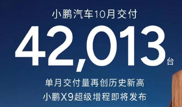 XPeng delivered 42,013 units in October, exceeding 40,000 units for two consecutive months. Key contributors included models like the MONA M03, XPeng P7/P7+, and the XPeng SUV family (G6/G7/G9). Notably, the XPeng X9 extended-range version is set to launch, marking XPeng's first extended-range model.