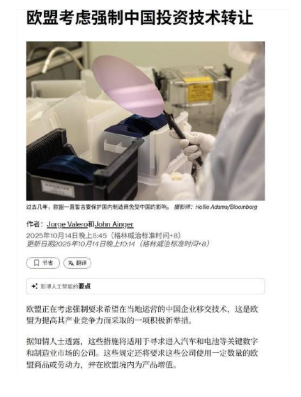△ The EU is exploring preconditions for Chinese companies' investments in Europe