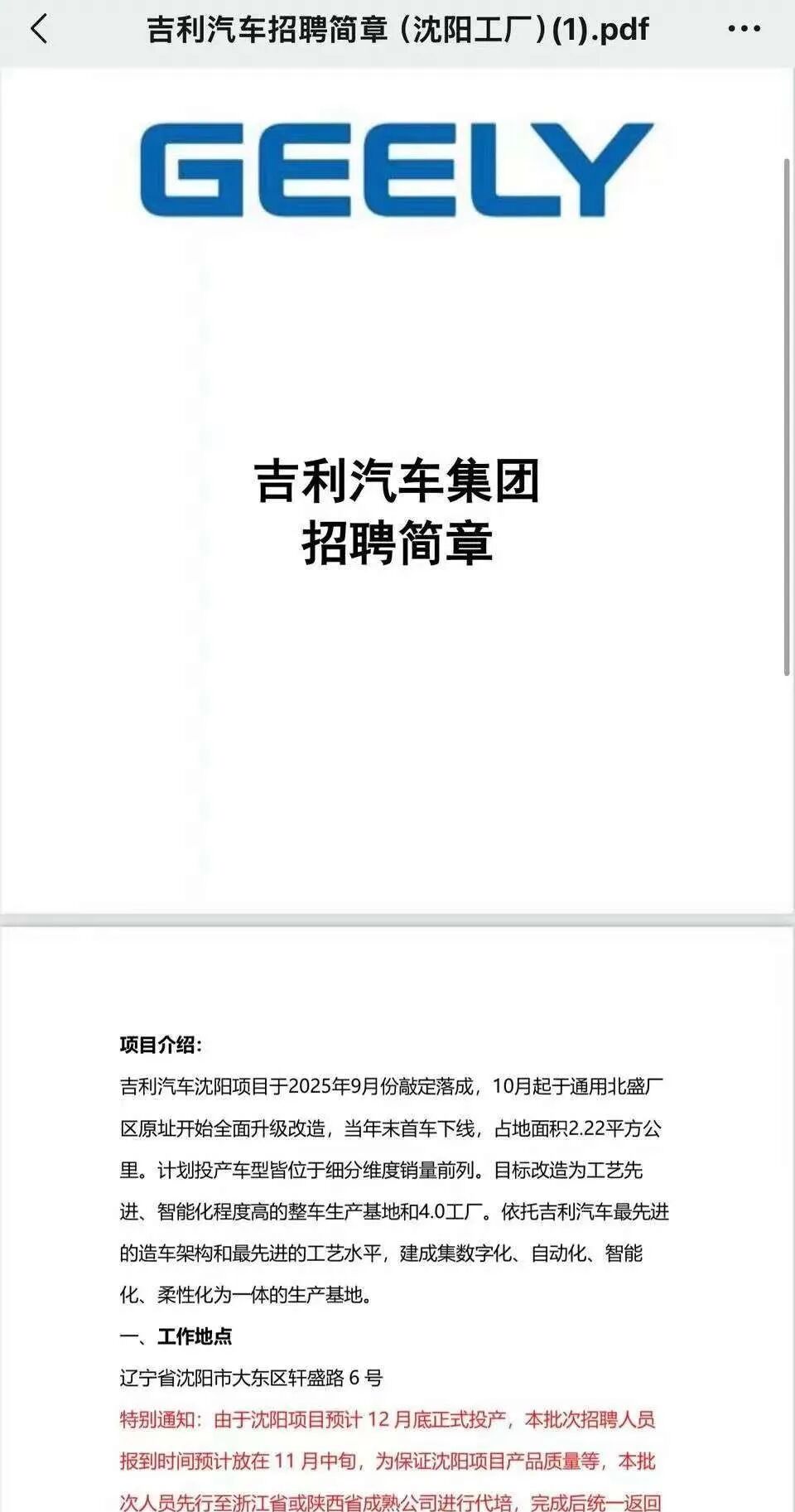 Subsequently, job posting websites showed that the 'Geely Automobile Shenyang Base' was intensively recruiting positions such as welding engineers and new energy production line technicians, with a preference for candidates 'familiar with electric vehicle production line renovations.' The talent structure and job requirements implied that this traditional fuel vehicle factory would be transformed into a new energy exclusive base.