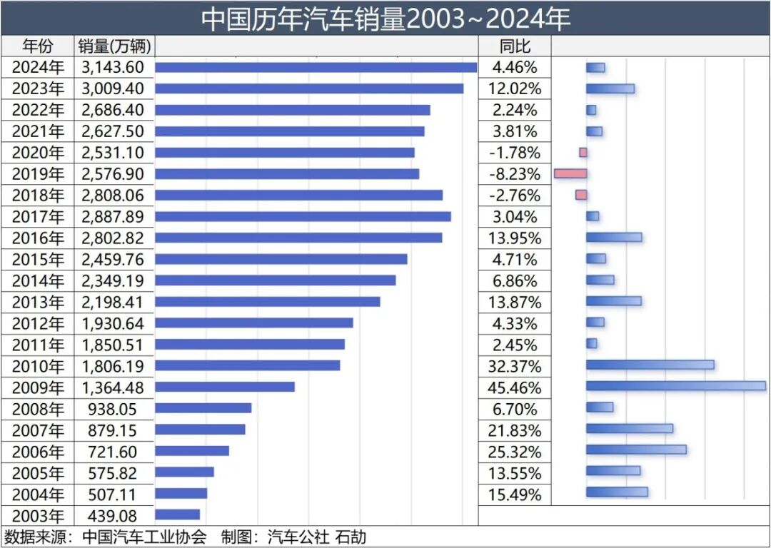 Since China became the world's largest automotive market in 2009, double-digit year-on-year growth in national car sales occurred in 2009-2010, 2013, and 2016.