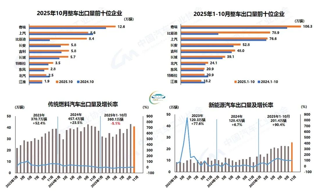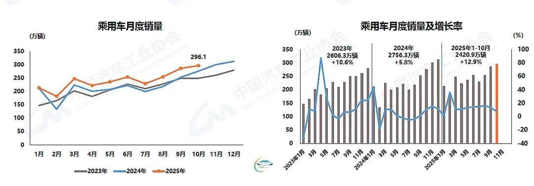 Despite the extended National Day and Mid-Autumn Festival holidays, the CAAM observed that "Automobile manufacturers have capitalized on the year-end policy transition window, maintaining a brisk production and supply pace. Companies continue to roll out new products intensively, and the industry's comprehensive governance efforts are progressing steadily. The automobile market sustains a positive growth trajectory, with monthly production and sales volumes reaching new highs for the same period." According to CAAM data, in October, automobile production and sales volumes reached 3.359 million and 3.322 million units, respectively, showing a 2.5% and 3% month-on-month increase, and a 12.1% and 8.8% year-on-year surge.