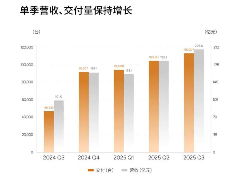 Behind the improved profitability lies a sustained increase in delivery volumes. In the third quarter of 2025, XPENG Motors delivered a total of 116,007 smart electric vehicles, marking a 149.3% year-on-year increase and a 12.4% quarter-on-quarter increase, setting a new quarterly delivery record. This growth rate far exceeds the industry average, highlighting XPENG’s unique appeal in a fiercely competitive market.