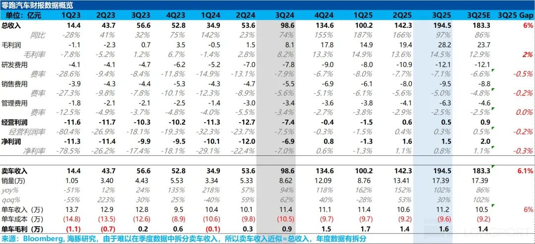 Overall, Leapmotor's total revenue and gross profit margin performed admirably in the third quarter, continuing to improve sequentially and surpassing market expectations. However, the significant sequential increase in SG&A expenses eroded the net profit, leading to a sequential decline and falling short of the market consensus of RMB 200 million.