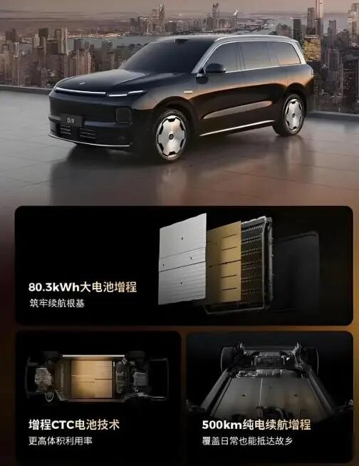 Besides clearing inventory, adjusting product structures is also crucial. For example, BYD's recent new models have increased battery capacity, elevating the pure electric range of entry-level versions to over 100 kilometers to meet the new regulations. Meanwhile, extended-range models are also embracing the "large battery" trend. Brands like Li Auto and Seres are equipping their new generation models with higher-capacity battery packs, with pure electric ranges generally exceeding 200 kilometers. Additionally, the Leapmotor D19 boasts a pure electric range of 500 kilometers, surpassing that of many pure electric vehicles.