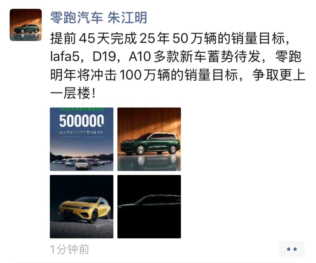 Screenshot of a WeChat Moments post by Zhu Jiangming, the Founder, Chairman, and CEO of Leapmotor