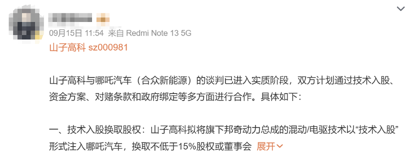 By September, media reports stated that Shanzhi Hi - Tech is advancing restructuring efforts with Hozon New Energy, the parent company of Neta. The reports pointed out that their cooperation would revolve around two major areas: technology equity participation and supply chain integration. Additionally, it was reported that after Shanzhi Hi - Tech takes over, Neta will launch dual - line products featuring hybrid and extended - range technologies. By 2027, Neta aims to achieve annual vehicle sales of 200,000 units.