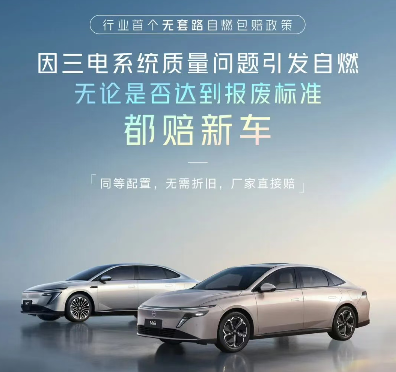 Especially in terms of delivery efficiency and after-sales policies, the former has made the commitment of 'immediate delivery upon launch,' while the latter has directly introduced the industry's first self-ignition compensation policy, shared by both the N7 and N6 models, without limiting it to the first owner, whether the vehicle is within the warranty period, or whether it has reached the scrap standard.