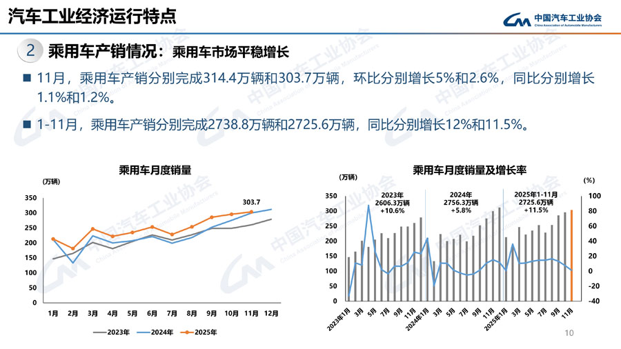 From January to November, a cumulative total of 27.256 million passenger cars were sold, representing an 11.5% year-on-year increase. Across the main passenger car types, all four categories registered double-digit growth compared to the same period last year, with cross-type passenger cars experiencing the most notable surge.