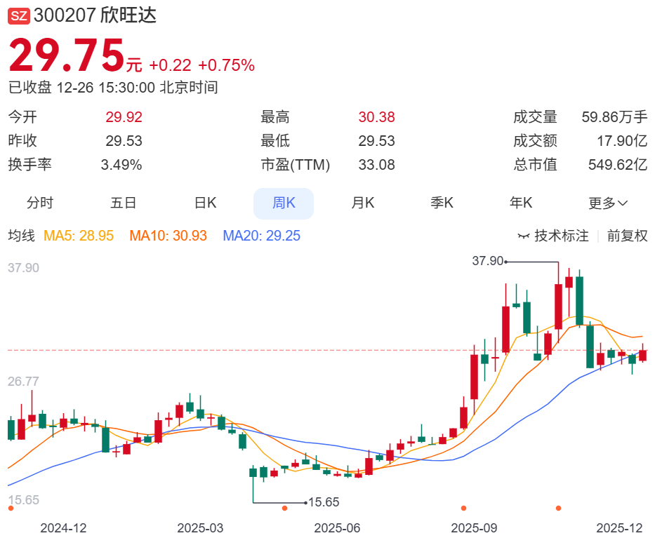 Sunwoda also stated in its announcement: "This lawsuit has not yet gone to court, and the outcome of subsequent judgments is uncertain. It is temporarily impossible to assess the impact on the company's current or future profits." From a market confidence perspective, Sunwoda's stock price previously surged to 37.9 yuan per share due to positive news about solid-state battery research but had fallen to 29.75 yuan by the close on December 26, 2025.