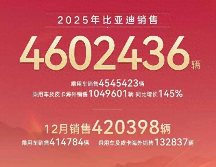 In December, BYD saw an approximate 18.2% year-on-year decline, directly impacting the monthly market landscape. Yet, another key data point demands greater attention: its overseas annual sales surpassed 1 million units for the first time, marking a staggering 145% year-on-year surge.