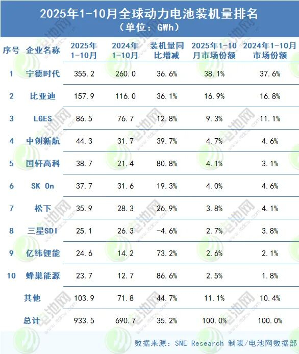 According to the latest report, from January to October this year, six of the top ten global power battery installers are Chinese companies.
