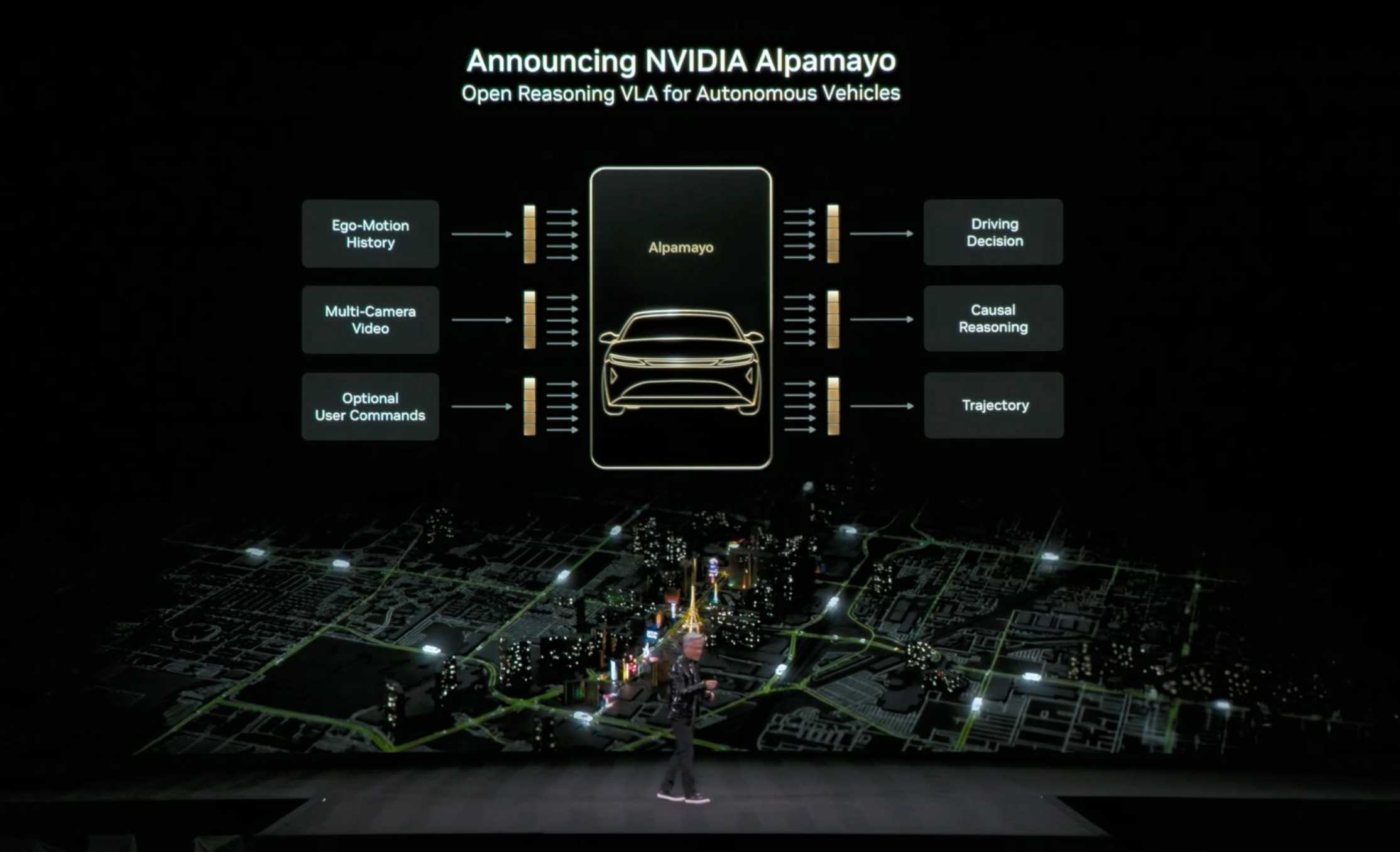 'This is the world's first AI for autonomous vehicles that can think and reason,' Huang declared confidently during his speech.