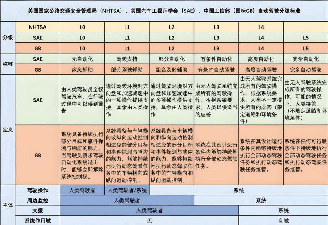 Classification of Automated Driving Levels. Image source: Internet