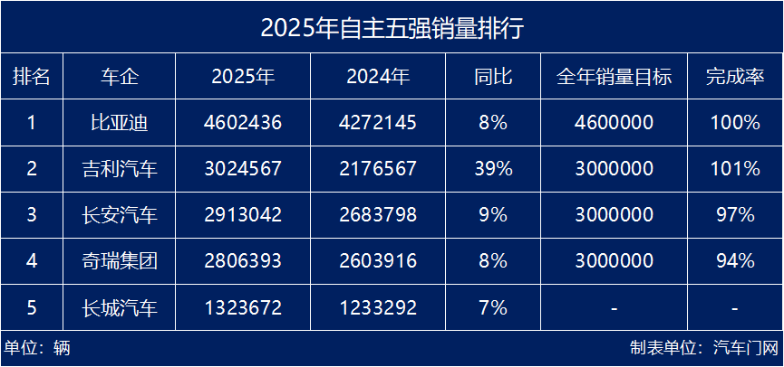 Overall, the top five domestic automakers showcased unique highlights in sales performance in 2025. BYD solidified its leading position with a 'three-peat,' facing domestic market pressure but achieving overseas breakthroughs as new support. Geely achieved high growth through explosive growth in its new energy sector, becoming the year's biggest highlight. Changan and Chery built differentiated advantages through technological breakthroughs and overseas leadership, respectively, while Great Wall Motors laid a foundation for steady growth and set new growth targets.