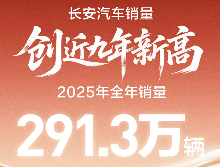 Data shows that Changan sold a total of 2,913,042 vehicles in 2025, up 9% year-on-year, setting a new sales record in the past nine years. Among them, Changan's new energy vehicle sales reached 1.109 million units, up 51% year-on-year.