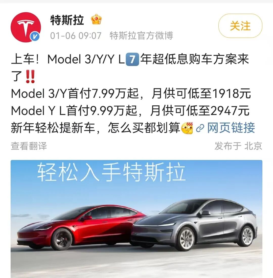 On January 6, Tesla China unveiled new financial plans for several models, aiming to spur market consumption through more flexible payment options. These policies cover key models like the Model 3, Model Y, and Model Y L, offering seven-year low-interest financing and five-year interest-free installments for all eligible models.