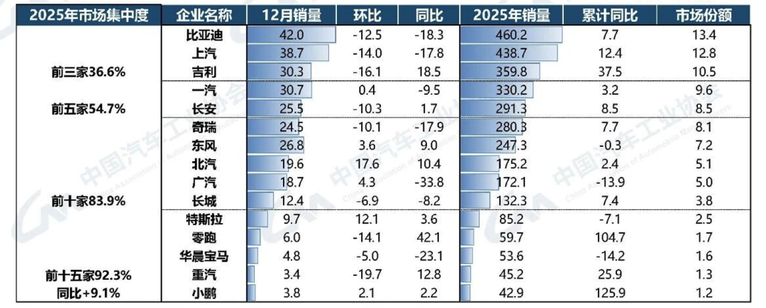 CAAM: December 2025 Automotive Industry Production and Sales Situation and 2026 Market Forecast
