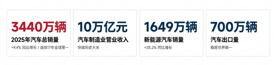 Referring to the official figures for 2024, China's GDP stood at RMB 134.8 trillion. Rough estimates suggest that automobile sales revenue in 2025 exceeded RMB 10 trillion, with the automotive industry's production, supply, consumption, and service output value likely accounting for over 10% of GDP.