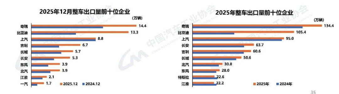 Chery (1.344 million units), BYD (1.054 million units), and SAIC (950,000 units) have emerged as the 'three pillars' of exports.