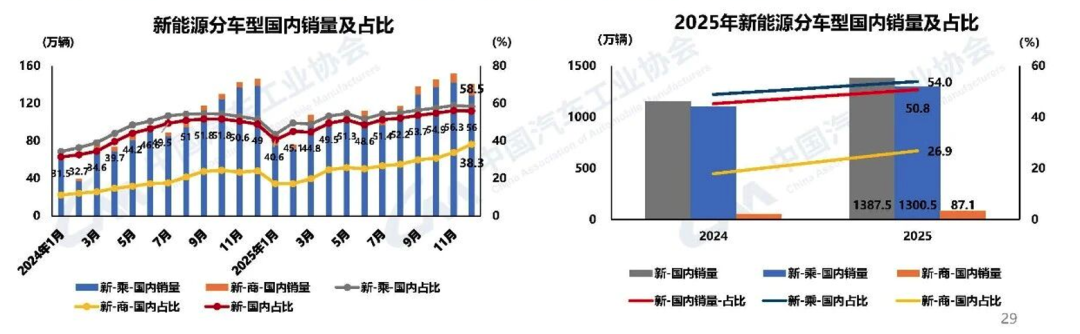 Penetration Rate Milestone: In 2025, NEV production and sales exceeded 16 million units, with sales reaching 16.49 million units, a 28.2% year-on-year increase. NEV sales accounted for 47.9% of total annual sales, with December's penetration rate surpassing 52.3%. This signals the substantial onset of an era where fuel vehicles are the minority.