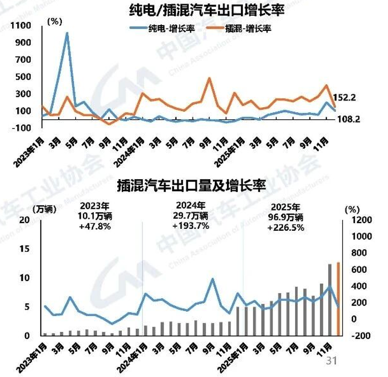 Plug-in Hybrid's Global Surge: Notably, on the export front, while pure electric vehicle exports at 1.646 million units still exceed those of plug-in hybrids, the export growth rate of plug-in hybrid electric vehicles (PHEVs) has been remarkable, reaching 2.3 times, with a total of 969,000 units exported throughout the year.