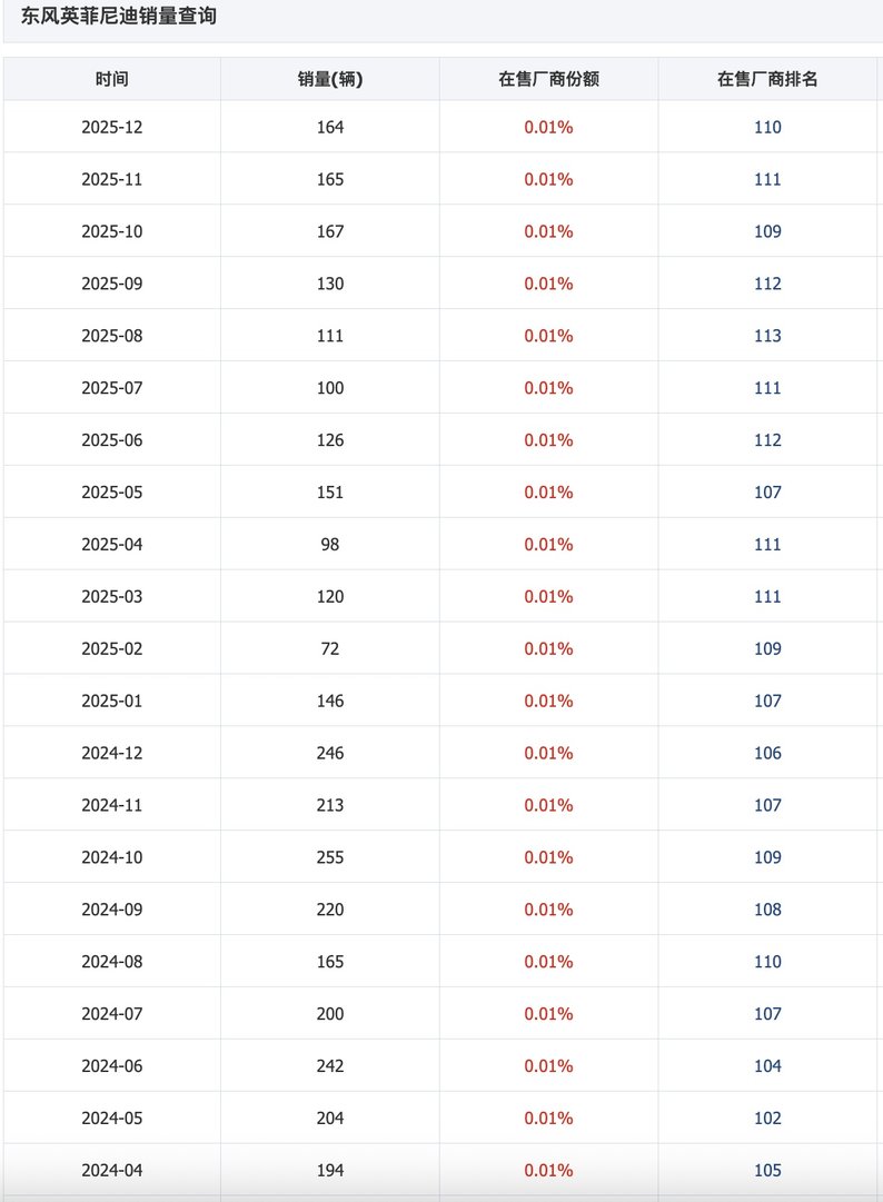 According to the data, Infiniti (with 1,550 units sold in China in 2025) and Skoda (with 15,000 units sold in China in 2025) are most likely to follow suit post-2025. Take Infiniti as an example; its annual sales pale in comparison to the monthly sales of leading brands, with dismal figures failing to sustain its independent production, sales, and R&D system in China.