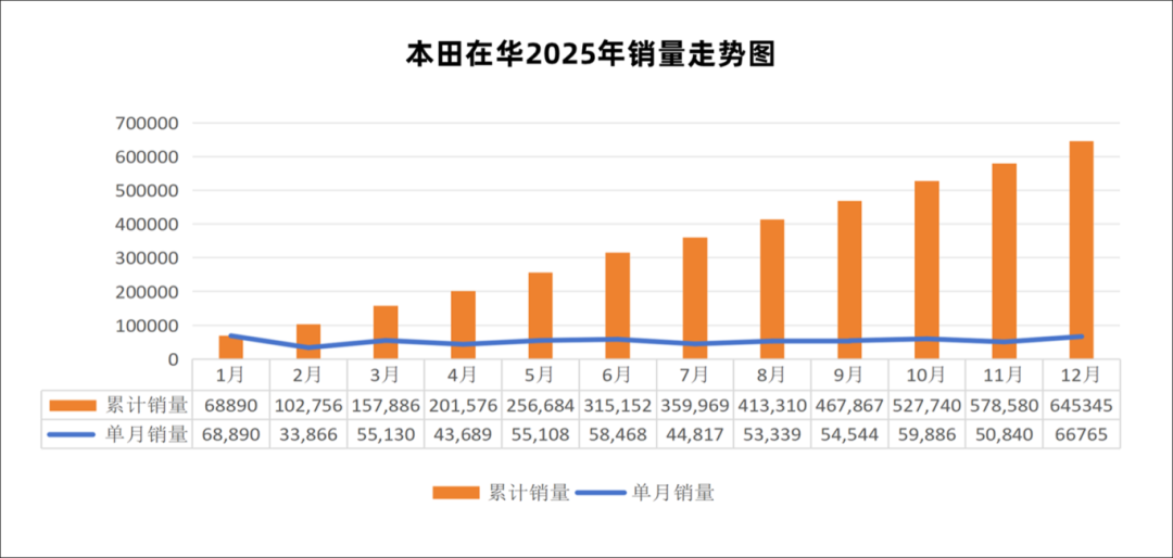 Honda's sales in China for the year totaled only 645,345 vehicles, marking a nearly 25% decline from the 852,269 vehicles sold in 2024. Except for the Accord and CR-V, all other Honda models lost their previous appeal across various market segments.