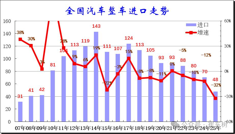 When Cui Dongshu, the Secretary-General of the National Passenger Car Market Information Association, unveiled China's 2025 auto import figures, the industry was jolted. Annual imports amounted to a mere 480,000 units, marking a 32% year-on-year nosedive and the steepest decline in a decade. December alone witnessed a mere 30,000 units imported, representing a staggering 56% year-on-year crash and a 30% sequential drop.