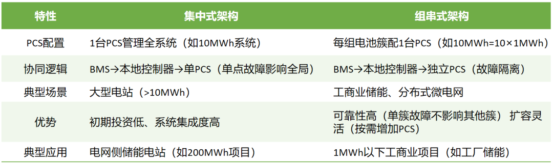 Centralized architecture is a commonly adopted solution for large-scale storage. Multiple battery packs are connected in parallel and managed uniformly by a centralized battery management system. Simultaneously, one or more PCSs are utilized to convert direct current into alternating current, which is then boosted by a transformer and connected to the grid.