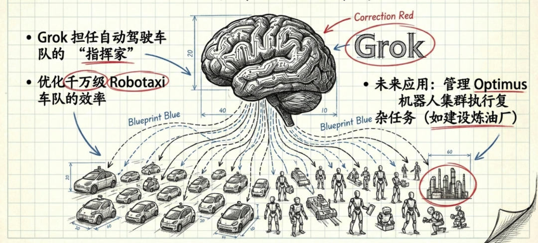 Recently, the integration of FSD and Grok has provided a clear experience in vehicle control. Grok can not only serve as an entry point for automotive interaction but also, in the future, Tesla expects the Grok model to act as a 'conductor,' managing a vast fleet of tens of millions of autonomous vehicles and millions of Optimus robots, optimizing efficiency.