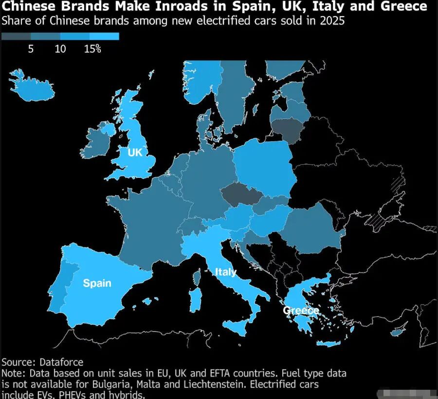 Growth is primarily driven by the EV sector, currently the main engine of European automotive expansion. Leveraging significant advantages in battery technology, Chinese automakers have attracted consumers across Spain, Greece, Italy, and the UK, establishing footholds in the electric and hybrid vehicle segments.