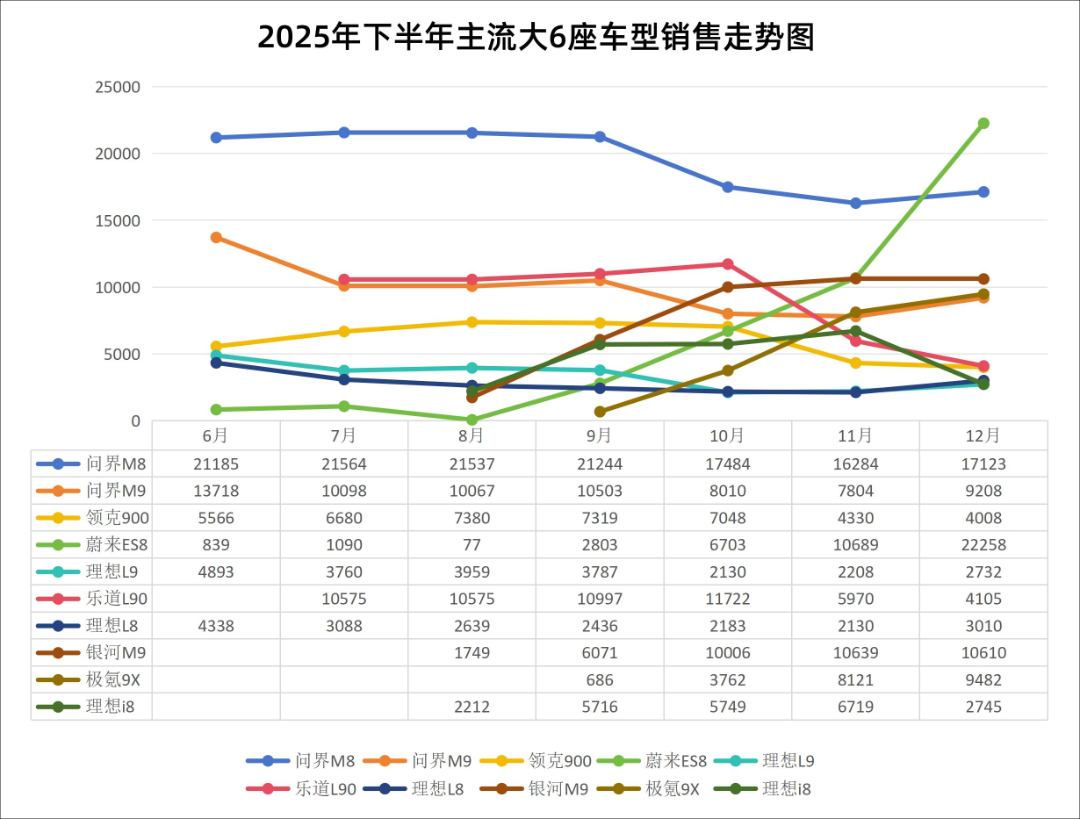 While other segments are already overcrowded, full-size six-seater SUVs, driven by the rigid demand of family users and their high-end value proposition, have become one of the few new blue oceans still maintaining double-digit growth. By 2025, cumulative sales surpassed 1.08 million units, up 18.3% year-on-year. The market, once dominated solely by Li Auto, is now crowded with formidable players like Aito, Zeekr 9X, and Denza N8L.