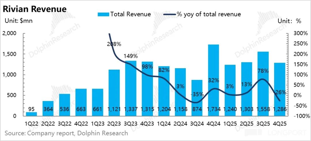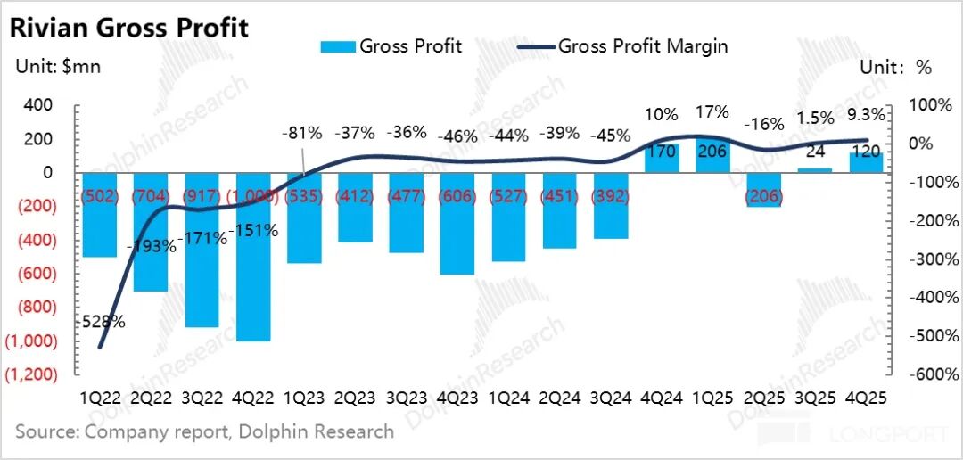 Overall, Rivian delivered a strong performance against low expectations. Affected by the IRA subsidy phase-out in the U.S. market, Q4 sales across the industry (including Tesla) were sluggish, and Rivian was no exception, hitting a sales trough.