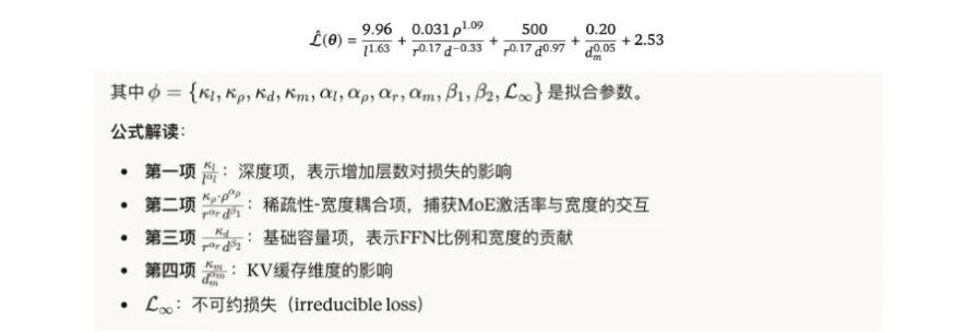 The first is the vehicle application of the loss function expansion law, using low-cost methods to “calculate” the upper limit of a model’s capabilities. This is a relatively common process in industry-scale large model research. The basic principle is that large models inherently have an “error rate,” with smaller models exhibiting higher error rates, but the growth curve of this error rate is predictable. This means that given a model’s hyperparameters (parameter count, layer count, FFN multiplier, etc.), its final accuracy can be predicted directly without complete training.