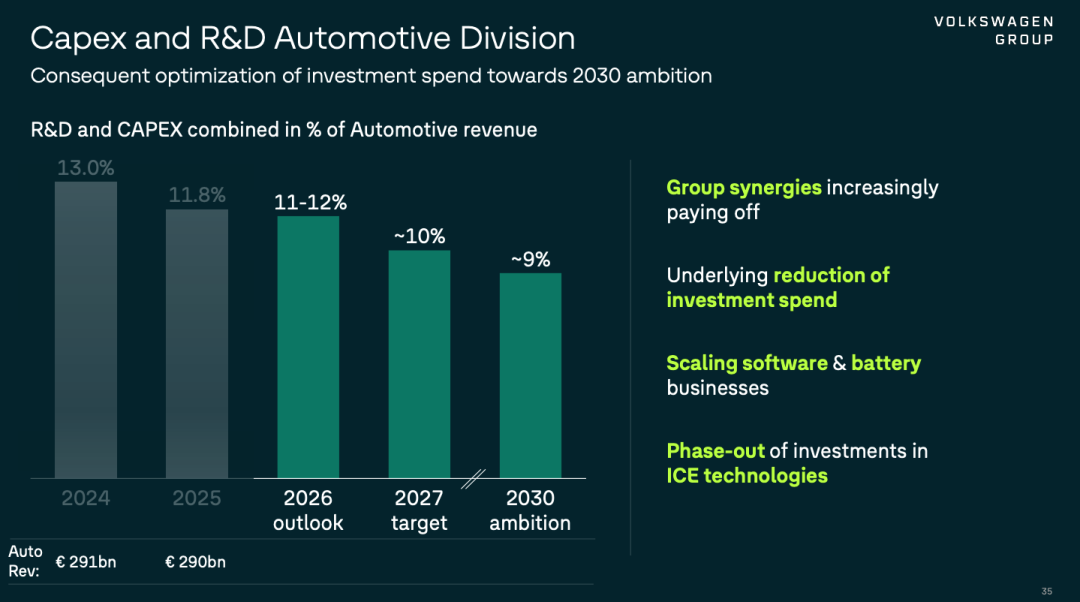 Investment Contraction: The automotive division's research and development and capital expenditure (R&D & CAPEX) ratio has dropped to 11.8%, with plans to further compress it to around 9% by 2030.