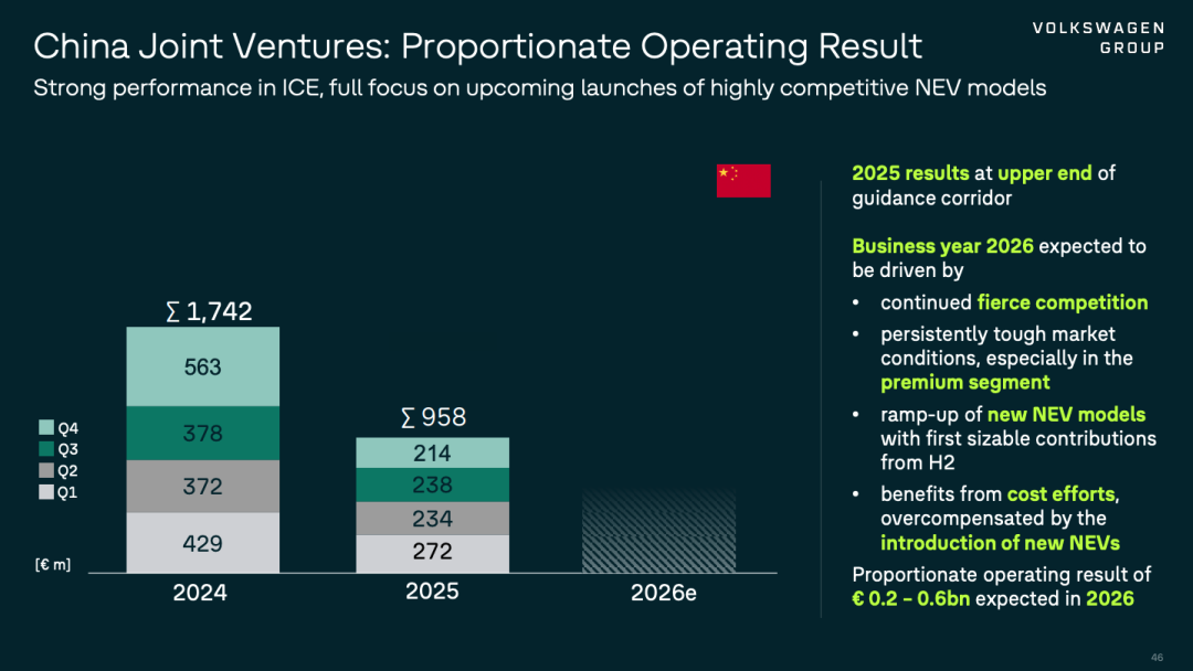 Profit Expectations Continue to Decline: In 2025, the pro-rata operating profit from Chinese joint ventures was just €958 million. More pragmatically (or harshly), facing intense competition from over 150 automakers, Volkswagen expects joint venture profits to further shrink to between €200 million and €600 million in 2026. Volkswagen's heyday in China may indeed be hard to reclaim. The group expects profit recovery in China to be visible only by 2027.
