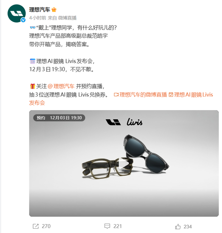 The value of this technological foundation has begun to spill over externally. The Li Auto AI Glasses Livis, released in December 2025, represent the first validation of this AI technology migrating to consumer terminals. It proves that the technological foundation built by Li Auto for embodied intelligent vehicles has cross-product reusability.