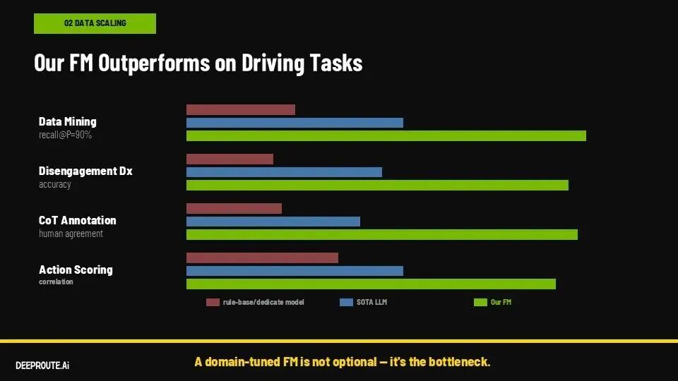 In this system, data mining no longer relies on rules but on the model's automatic identification of high-value clips. Disengagement analysis shifts from manual attribution to model-based classification and diagnosis. Annotation evolves from 'labeling answers' to 'generating reasoning processes.' Driving quality assessment is unified under the model.