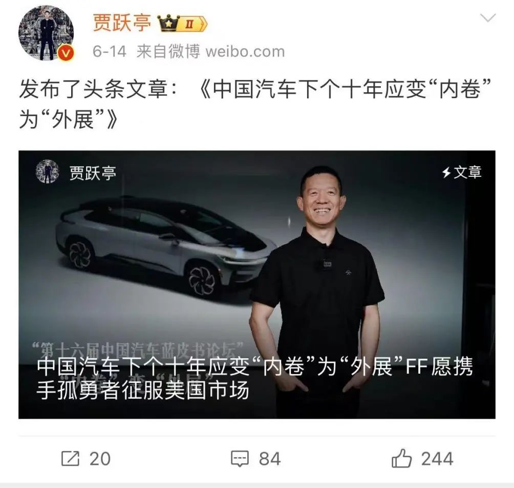 Since the beginning of this year, Jia Yueting's long-dormant Weibo account has gradually started updating, even actively stepping on the high-profile collapse of another company, GoHiGo, and threatening to take them to court. Meanwhile, as various automotive CEOs and chairmen joined the trend of internet celebrity economy, building personal IPs and forming unique communication styles, Jia Yueting also participated, even starting to criticize various industry irregularities and constantly outputting opinions...