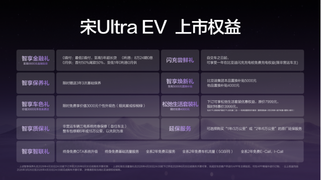 The BYD Dynasty series is dedicated to creating a worry-free ecosystem that encompasses every aspect of car ownership, from purchase to usage and maintenance. To this end, the Song Ultra EV offers substantial purchase incentives, including "zero down payment, zero usage fees, and zero maintenance costs!" Additionally, a wealth of other benefits ensures users an exceptional car-buying experience.