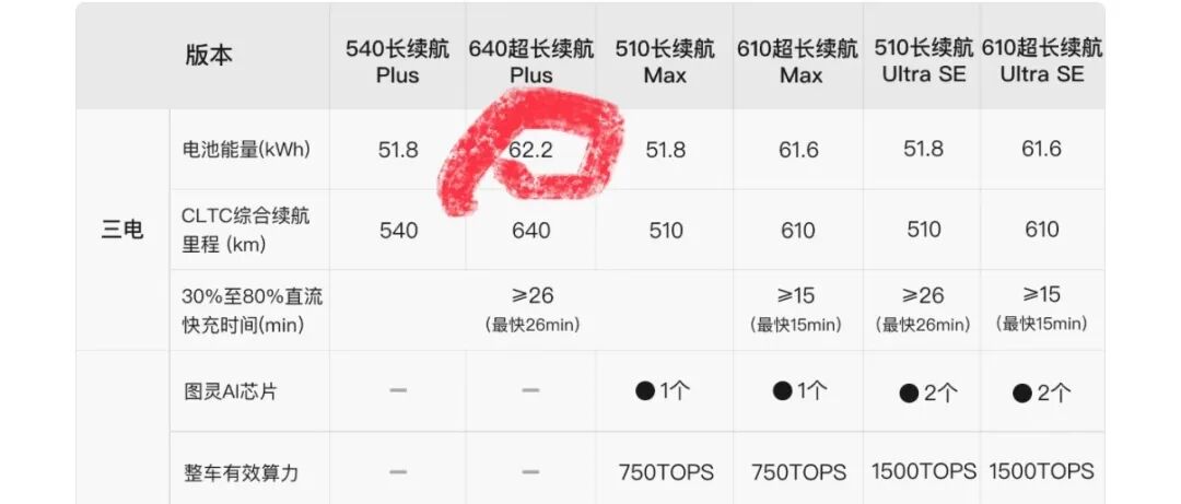 What puzzles me is the battery strategy—three versions: 51.8 kWh, 62.2 kWh, and 61.6 kWh. From a supply chain management perspective, two battery specifications would be more cost-effective and easier to manage. Unifying naming or range (540/640, 510/610) seems unnecessary, adding unnecessary costs.