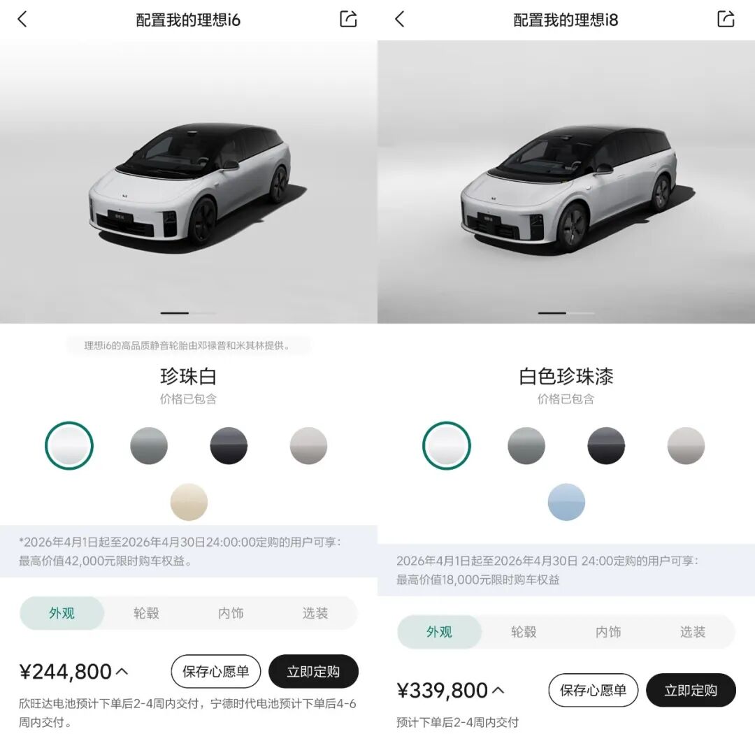 Orders for the i6 with Sunwoda batteries are expected to be fulfilled within 2-4 weeks, while CATL battery versions will take 4-6 weeks.